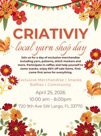 Join us for a day of exclusive merchandise including yarn, patterns, stitch markers and more. Participate in raffles and help yourself to some snacks. Enjoy 60% off sale items. First come first serve for everything. Local Yarn Shop Day - April 25th